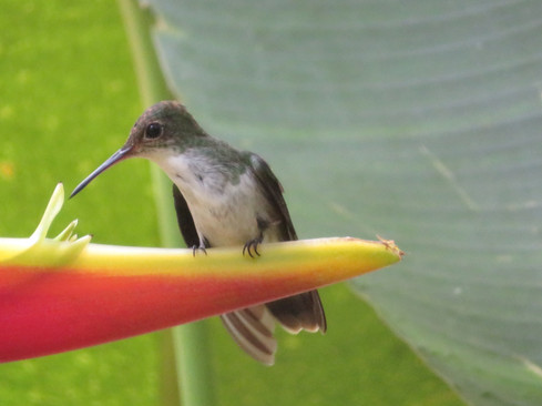 We watched a hummingbird build a nest in some plants close to our garbage can at the beginning of April. She laid 2 eggs soon after. After 2 weeks, one egg hatched and the other one hatched the next day. She doesn’t seem bothered by us watching her on the nest and everyone is interested. Tania had a tripod set up the whole time, taking pictures of this miracle in action. After a few days, the mama didn’t stay in the nest anymore but came to feed them several times a day. It truly was wonderful to watch. We had a rainstorm this past week with thunder, lightning and heavy winds. When we checked the next we were sad to discover one chick had fallen out and died. The other one is still doing great! He should be ready to fly the nest in about another week. The thing about the jungle is that it is a fast-moving and dangerous place for animals and insects. Trees, plants, and flowers grow at an incredible pace here. It’s amazing and I am very fortunate to be able to enjoy this beautiful place for an extended period of time. I’m learning so much!