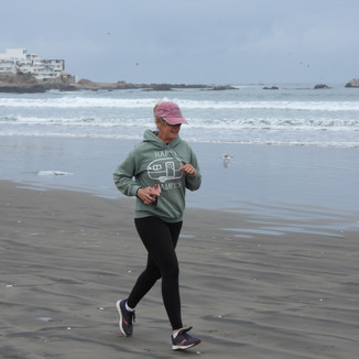 I slept pretty well on the small bed. I had one cup of tea and then we headed to walk on the beach. It was overcast and very windy. so chilly. I decided to take advantage of jogging on the packed sand. I probably jogged less than a mile but it was a great photo op.
