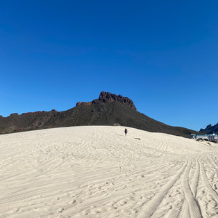 We packed some snacks for a road adventure at lunchtime. We saw another beach up the road about 4 km. We could actually drive the truck on the beach. So we did, of course. We walked almost 6 km down a relatively empty beach. No people, no vendors just us and another couple that was in the RV park, and they recognized us. We chatted and the lovely lady told me it was the best day of her life!! She told me that when she was in the ocean this morning, Dolphins came up and swam with her. It was like a dream come true. We were on high alert when we finished our walk on the beach. We got to see a few dolphins not too far in the distance. It was very special. The dolphins and the ladies story.