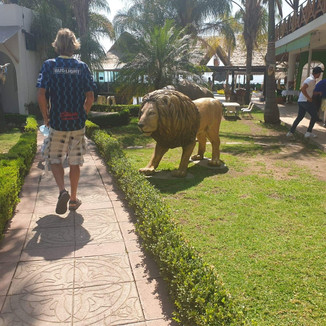 We wanted to hike to the chapel we discovered last week. We thought it would be an easier hike and we could get lunch when we finished. Well, it was a super easy hike. We finished it in less than 20 minutes! We had great views of Lake Chapala and Ajijic. Larry and I wanted to hike further to the ceremonial grounds but Deb and Robin felt accomplished at the chapel. We continued for another hour of hiking while they walked down to Ajijic for breakfast at Emilia’s. We met up with them on the Malecon when we finished the rest of our hike. It was their first time at the Ajijic Malecon so they were happy just walking around this area. On the way back to the park, we did stop for a beer and snack, mostly for Larry. He had a full lunch! We ate at El Arca. They had lots of animal statues and colorful stained glass windows. Deb and I had Micheladas! I have discovered a new drink I like. Yum!