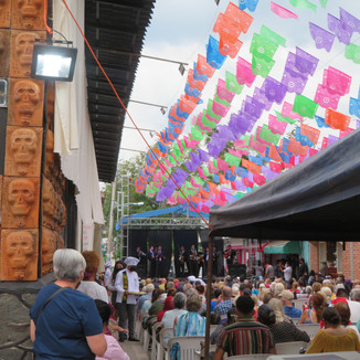 Our other bike ride was into Ajijic. It was another short ride, only 5.3 kilometers to the Malecon. We parked our bikes at the Ajijic plaza which is the center of town. The Malecon is a few short blocks away. It’s easier to walk once we get there. The narrow cobblestone roads are hard to maneuver with a bike. We were there to see the unveiling of a mural by one of Ajijic’s famous artists, Efren Gonzalez. He has a studio and gallery in Ajijic and also teaches painting classes. He does many murals in Ajijic and donates his time for the community. We thought it would be a fun activity for the evening. We had a quick dinner at Tango. It’s a very good restaurant that caters to Ex pats. They have a huge menu with lots of vegetarian options. At the event, they had a few bands playing on stage before the main event. Very much to the Mexican lifestyle, the event did not start on time. Very typical. We walked around and heard some music from a small bar on the corner called Camaleon. It was a young man playing an electric violin and it was amazing. We listened outside for a bit. We found out later the name of the group is Black String. It’s a father son team. Next we headed back to see if the unveiling was happening. It seemed to be a pretty big deal. There must have been over 100 folks seated plus 50 or so milling about, like us. After many speeches by important people, Efren thanked everyone including his mom and wife, they pulled the rope and nothing happened! LOL They had a small malfunction but eventually the huge cloth exposed the newly refurbished mural. Efren had painted the front of the school 20 years ago and it was time to freshen it up. It was beautiful and everyone clapped. We headed to our bikes as it was dark...we don’t have lights on the bikes. The bike trail was lit well and we arrived home safely.