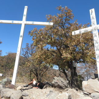 We had lots of water this time and more food. It’s not fun when we run out of water before we get done. Let's just say there were lots of trails that sprouted off from the main trail. We did some backtracking too. Sometimes I was able to bring up my all trails map and other times I had no service. We got to El Pandito in about 2 hours. It was a nice flat area to rest and had great views of Ajijic and Lake Chapala. Another good link to explore lake Chapala. Three out of four of us, felt like it was time to return down the hill. We were satisfied with our efforts even though we didn’t get to the 3 crosses. We were willing to try another day. I just wanted to check out the next part of the trail up the hill to get an idea. Well, Max says, “I think we should try.” I took a group vote and we decided to try the steep trail to the crosses. It split into 2 trails shortly after we began. We followed the yellow and white trail markings and went left instead of right which had no marks. We hiked down quite a bit which seems weird as we were trying to get to the top of the hill. When my all trails app started working again, I discovered that we were on the wrong trail. This one would eventually get us there but in twice the time…..I ask if we should turn around. Max says no, to keep ongoing. We continued to hike for another hour as this trail gradually started uphill and got very narrow. In some places, it was only one foot wide…..parallel. When we got to the place where the rope was required…...so you wouldn’t fall off the side of the hill, 3 out of 4 folks stopped! Larry scampered up the hill aways. We called out and Larry said, you guys don’t want to come up this way. He said it only got worse! At this point, we all called the hike to the crosses done and headed back down. We still had a super great time but I didn’t feel like dying on this day! The trail won...today! We were on the trail from 9:30 am until 3:50 pm.